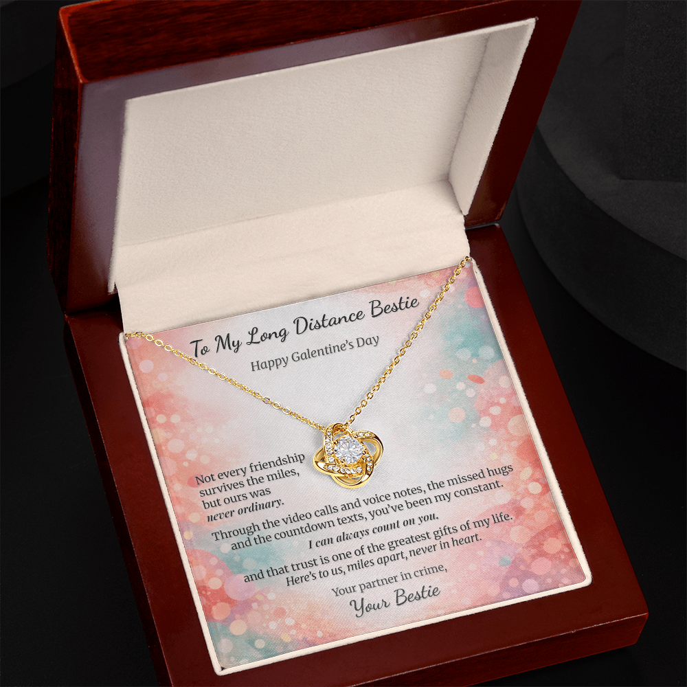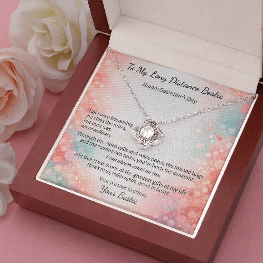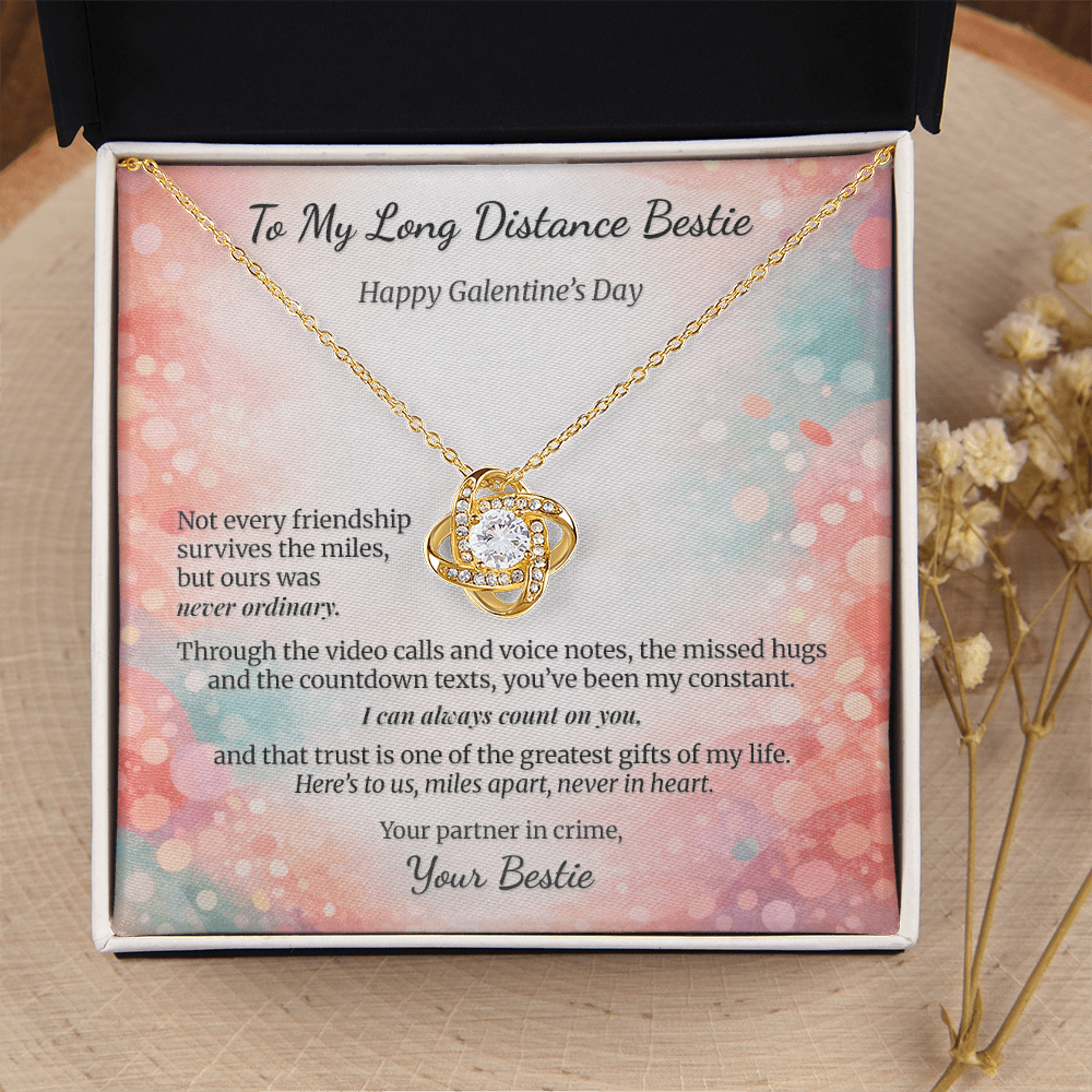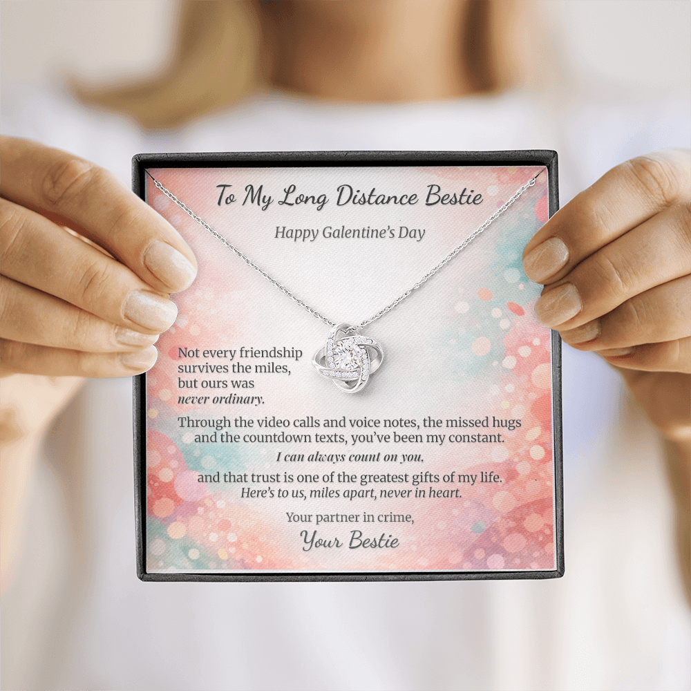 Imagine her reaction receiving this beautiful Love Knot Necklace. Representing an unbreakable bond between two souls, this piece features a beautiful pendant embellished with premium cubic zirconia crystals. Surprise your loved one with this gorgeous gift today!