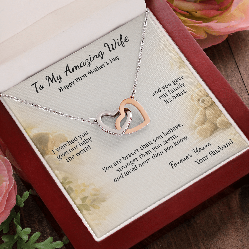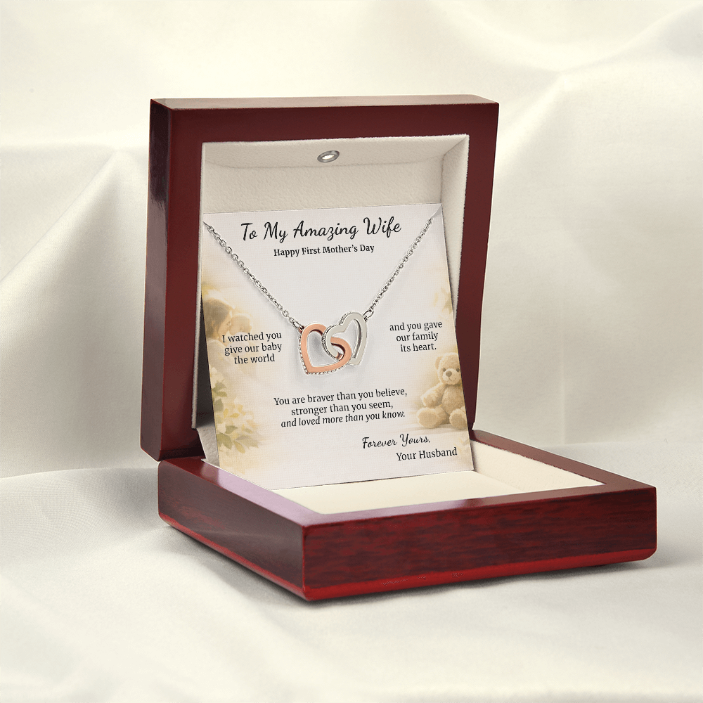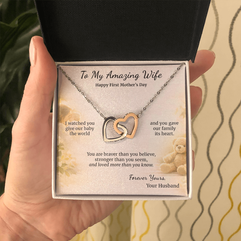 🎁 Interlocking Hearts Necklace for New Mom First Mothers Day | Message Card | Sentimental — Make her first Mothers Day unforgettable with this beautiful Interlocking Hearts Necklace. This stunning necklace comes with a heartfelt message card in an elegant gift box, ready to give. The perfect sentimental gift that captures your love and appreciation for the amazing new mom in your life.